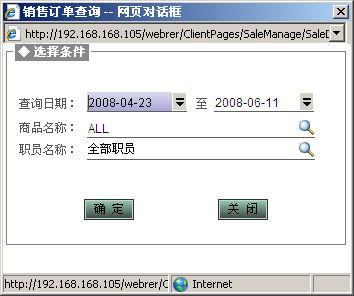 由用戶設(shè)置好查詢時(shí)間、商品名稱、職員名稱后,按確定,進(jìn)入報(bào)表顯示界面。 界面如下圖: